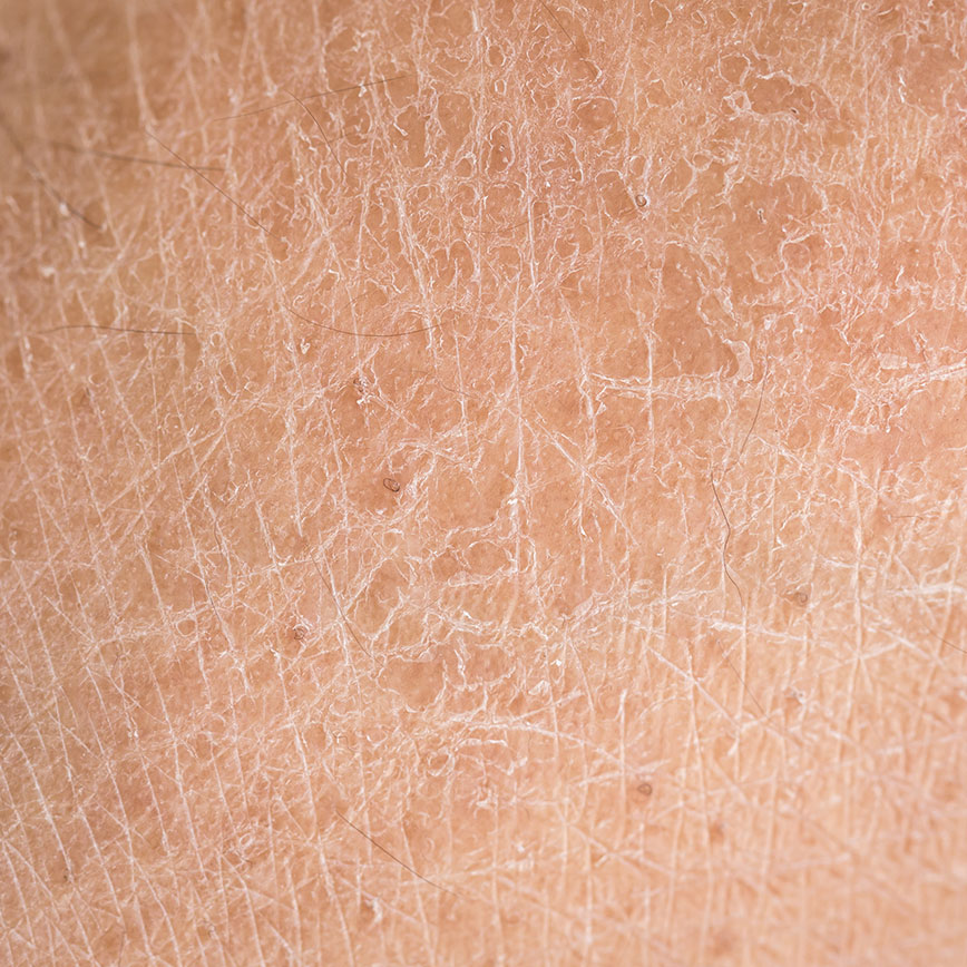 Ihr mangelt es an Feuchtigkeitsfaktoren und Lipiden. Symptome: Spannungsgefühl, Rötungen, Juckreiz, schuppige Stellen oder Risse in der oberen Hautschicht. Ursachen: Kälte, trockene Luft, Sonne, hormonelle Veränderungen, Hauterkrankungen (z. B. Neurodermitis).