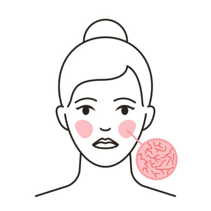 Rosazea (Gesichtsrose) Chronische, entzündliche Erkrankung der Gesichtshaut mit Rötungen, Papeln, sichtbaren Äderchen, sog. Flushing (plötzliches Erröten durch Hitze, Alkohol, Stress). Ursachen: erbliche Veranlagung, stark vermehrte Demodex-Milben, gestörtes Immunsystem.